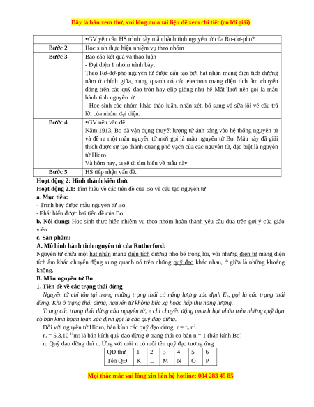 Bước 1 GV nêu vấn đề: Trong mẫu này, Bo vẫn giữ mô hình hành tinh nguyên tử của