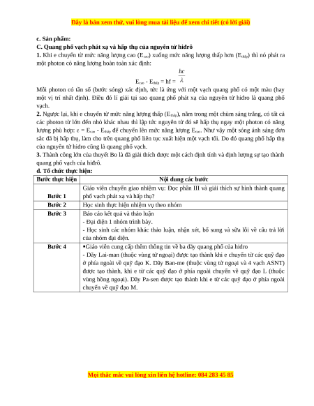 thích được sự tạo thành quang phổ vạch của các nguyên tử, đặc biệt là nguyên