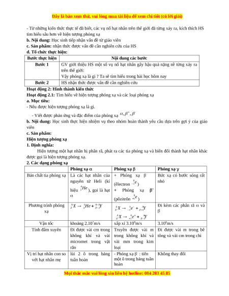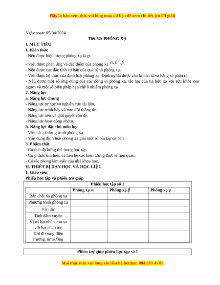 Ngày soạn: 05/04/2024 Tiết 62: PHÓNG XẠ I. MỤC TIÊU 1. Kiến thức