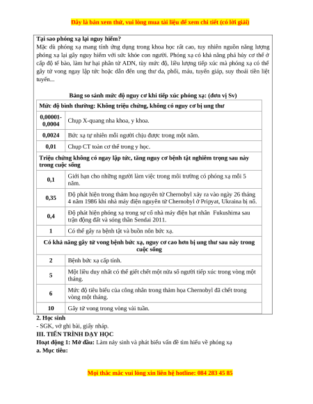 - Nêu được một số ứng dụng của các đồng vị phóng xạ, tác hại của tia bức xạ với sức khỏe con