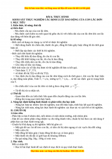 KHẢO SÁT THỰC NGHIỆM CÁC ĐỊNH LUẬT DAO ĐỘNG CỦA CON LẮC ĐƠN I. MỤC TIÊU