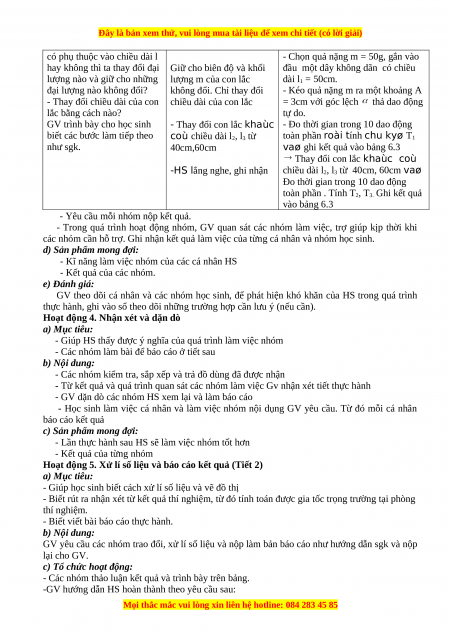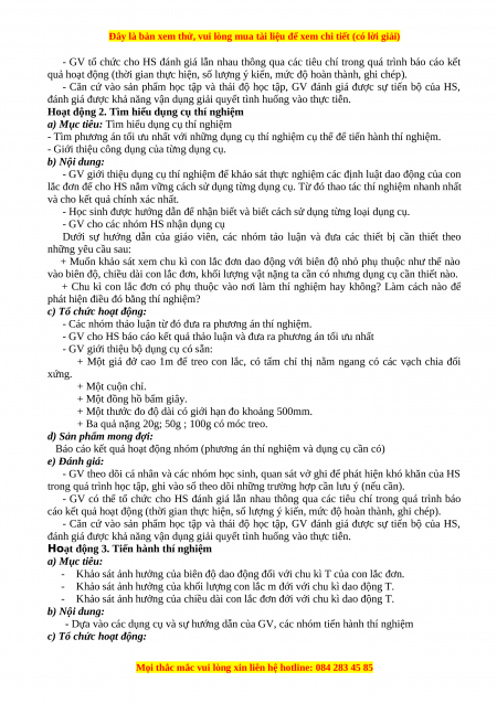 + Một giá đở cao 1m để treo con lắc, có tấm chỉ thị nằm ngang có các vạch chia đối xứng. + Một cuộn chỉ.