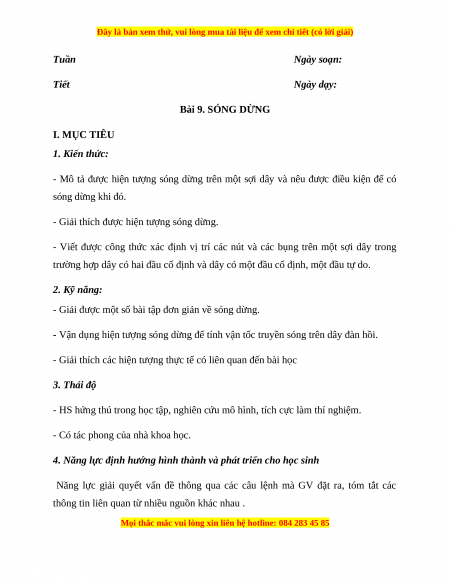 Tuần Ngày soạn: Tiết Ngày dạy: Bài 9. SÓNG DỪNG I. MỤC TIÊU