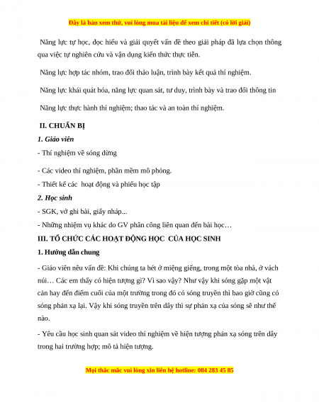 Năng lực thực hành thí nghiệm; thao tác và an toàn thí nghiệm. II. CHUẨN BỊ 1. Giáo viên