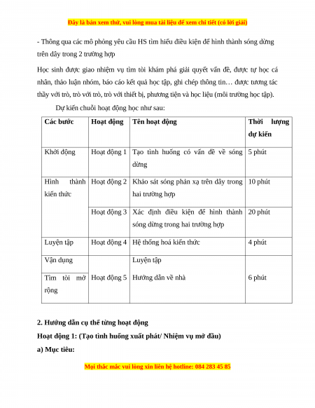 - Mô tả được hiện tượng sóng dừng trên một sợi dây và nêu được điều kiện để có sóng dừng khi đó.