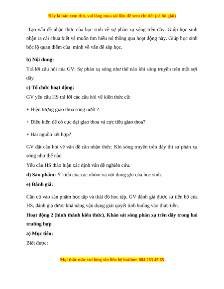 Tạo vấn đề nhận thức của h9c sinh về sự phản xạ sóng trên dây. Giúp h9c sinh
