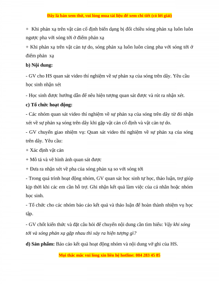 - Yêu cầu học sinh quan sát video thí nghiệm về hiện tượng phản xạ sóng trên dây