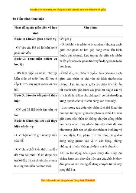 trong nhóm khi tìm hiểu về cấu tạo các chất, sự chuyển thể của các chất.