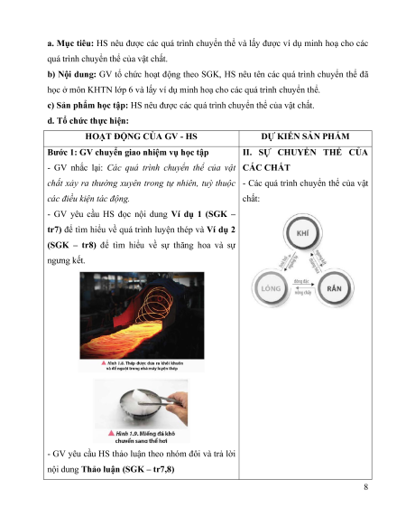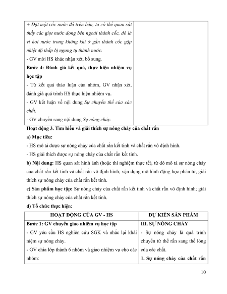 - Giải thích được sơ lược một số hiện tượng vật lí liên quan đến sự chuyển thể: sự nóng chảy, sự hóa hơi.