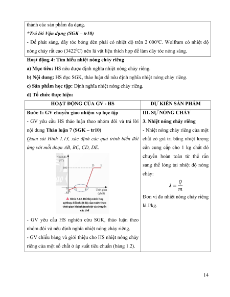 - Nêu được định nghĩa và xác định được nhiệt nóng chảy riêng.