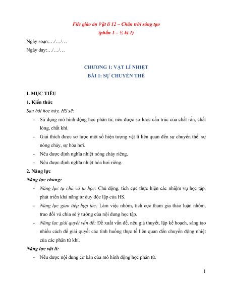 File giáo án Vật lí 12 – Chân trời sáng tạo