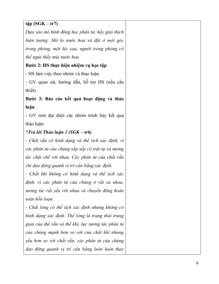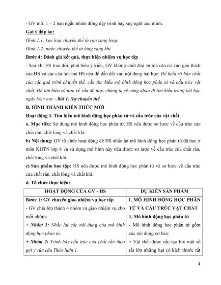 Hoạt động 1. Tìm hiểu mô hình động học phân tử và cấu trúc của vật chất