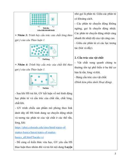 https://phet.colorado.edu/sims/html/states-of-matter-basics/latest/states-of-matter- basics_all.html?locale=vi - Phiếu học tập.