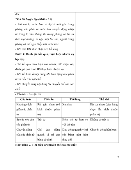 - Sử dụng mô hình động học phân tử, nêu được sơ lược cấu trúc của chất rắn, chất lỏng, chất khí.