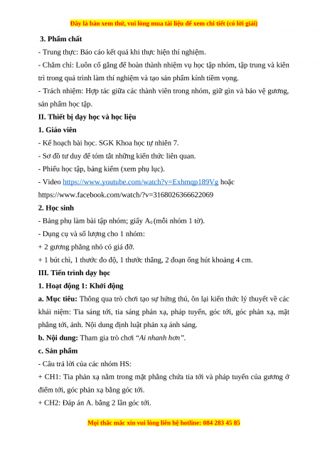 - Kế hoạch bài học. SGK Khoa học tự nhiên 7.