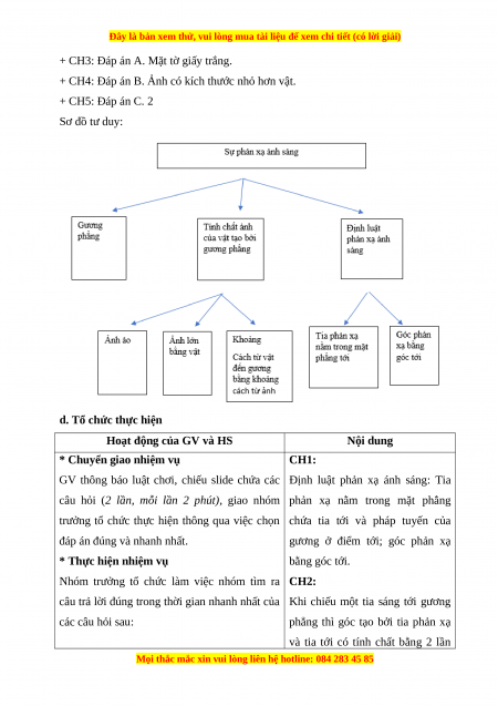 + CH4: Đáp án B. Ảnh có kích thước nhỏ hơn vật. + CH5: Đáp án C. 2 Sơ đồ tư duy: