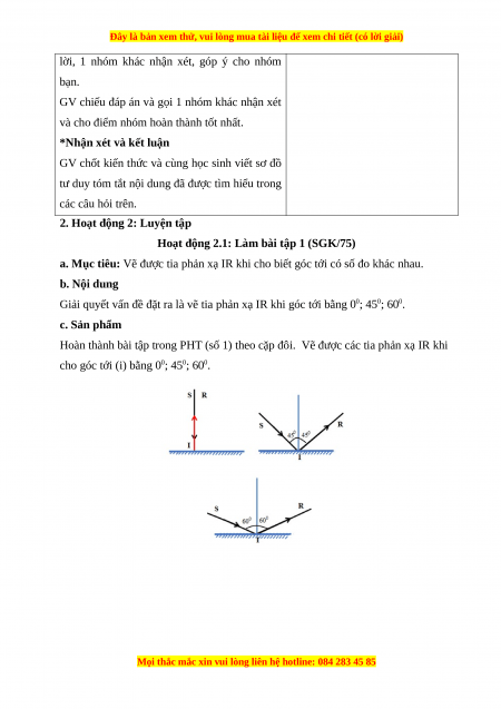 câu hỏi (2 lần, mỗi lần 2 phút), giao nhóm phản xạ nằm trong mặt phẳng
