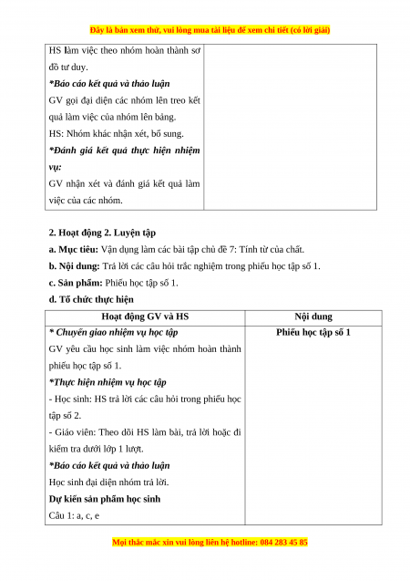 - Học sinh: HS trả lời các câu hỏi trong phiếu học tập số 2.