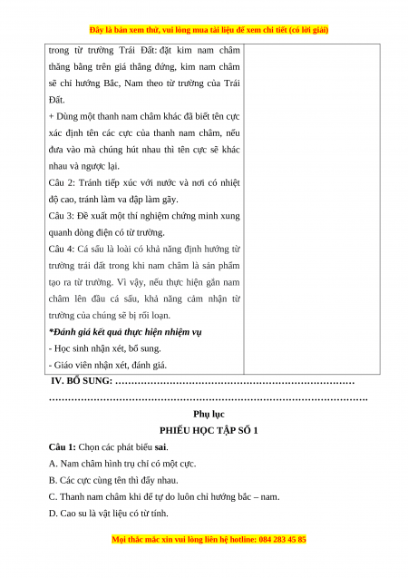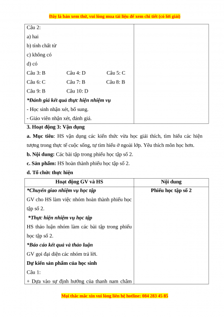 Câu 2: a) hai b) tính chất từ c) không có d) có Câu 3: B Câu 4: D Câu 5: C Câu 6: C Câu 7: B Câu 8: B Câu 9: B Câu 10: D