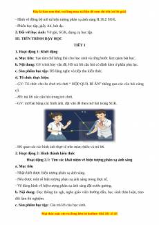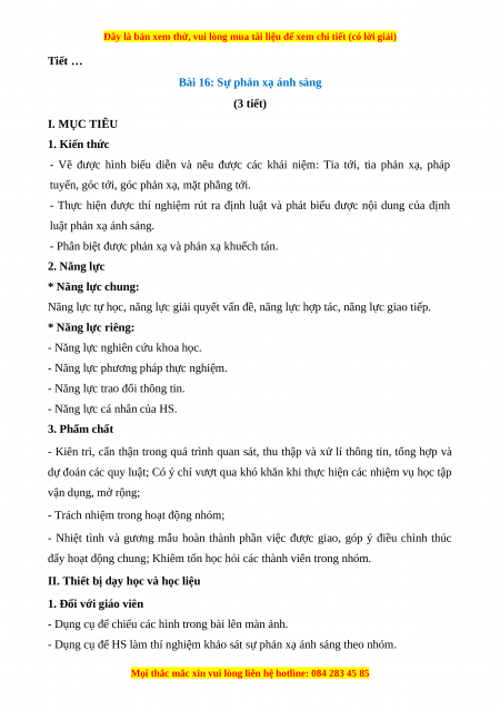 Bài 16: Sự phản xạ ánh sáng (3 tiết) I. MỤC TIÊU 1. Kiến thức