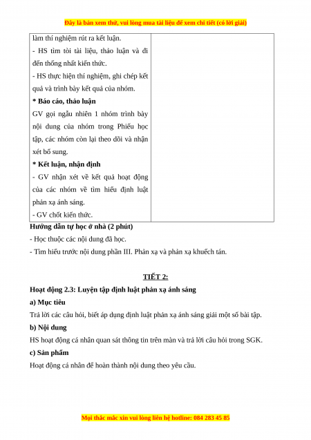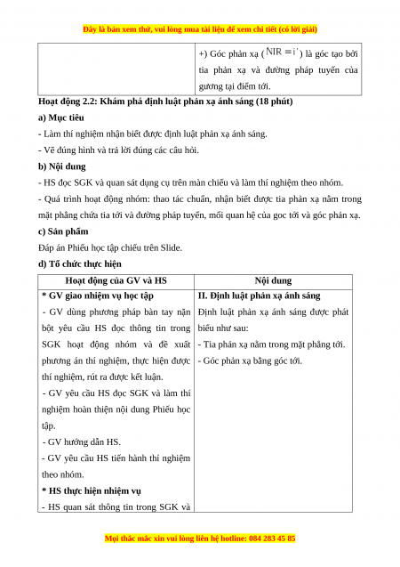 Hoạt động 2.2: Khám phá định luật phản xạ ánh sáng (18 phút) a) Mục tiêu