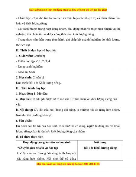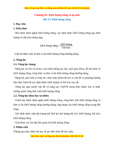 - Giải được các bài tập liên quan tới khối lượng riêng. 3. Phẩm chất