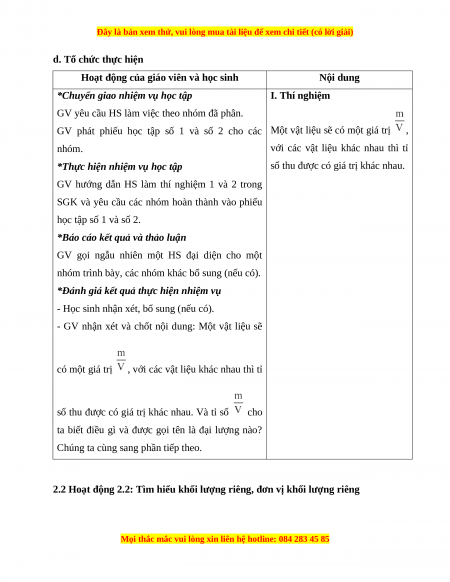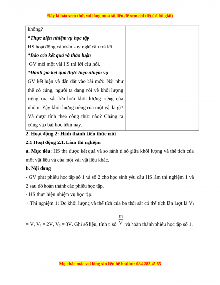 2.2 Hoạt động 2.2: Tìm hiểu khối lượng riêng, đơn vị khối lượng riêng