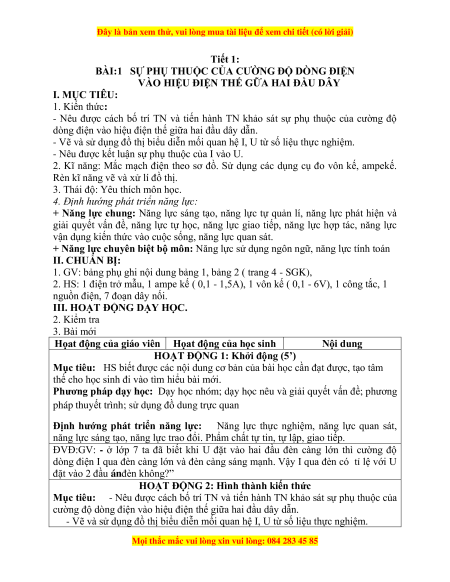 Bộ giáo án Vật lí 9 đã cập nhật đủ Cả năm.