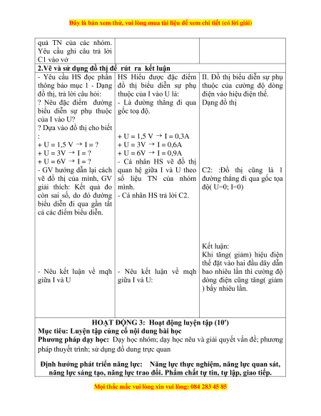 - GV hướng dẫn lại cách quan hệ giữa I và U theo C2: :Đồ thị cũng là 1