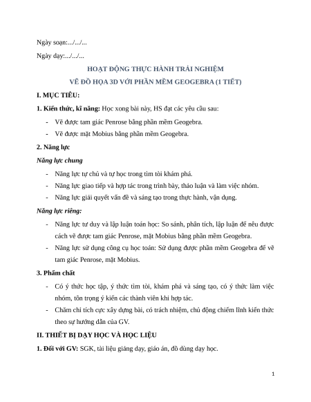 - Vẽ được mặt Mobius bằng phần mềm Geogebra. 2. Năng lực