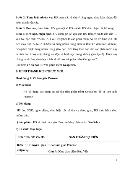 - HS sử dụng các công cụ có sẵn trên phần mềm GeoGebra để vẽ tam giác Penrose. b) Nội dung: