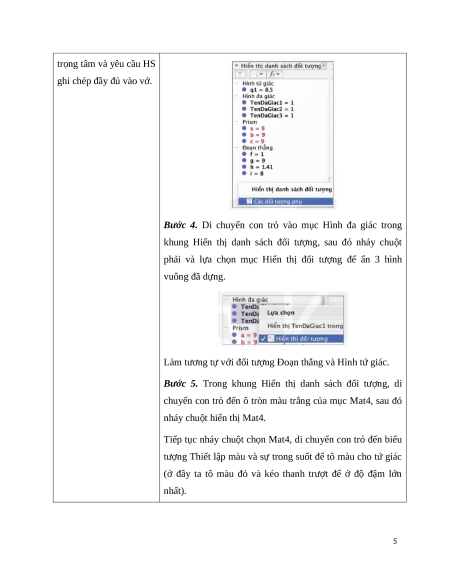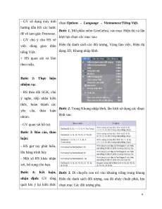 hướng dẫn HS các bước Bước 1. Mở phần mềm GeoGebra, vào mục Hiện thị và lần