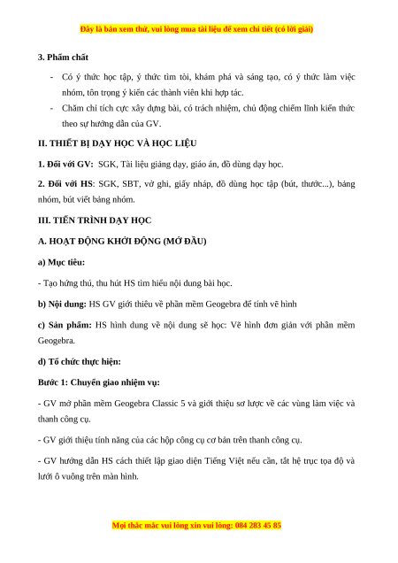 - Sử dụng công cụ, phương tiện học toán: sử dụng phần mềm toán học Geogebra.