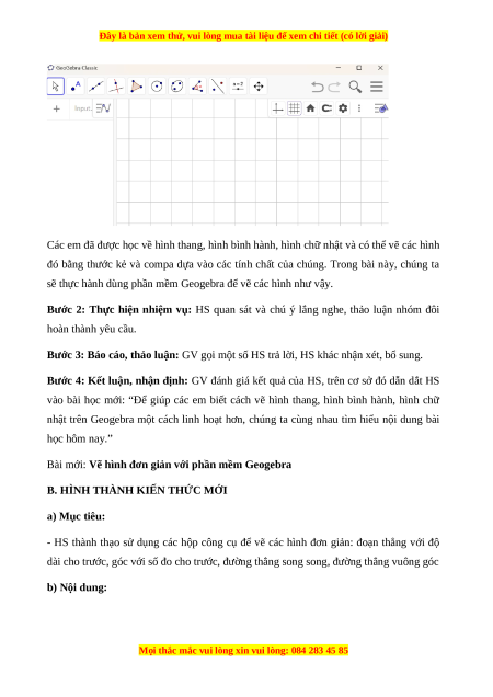 VẼ HÌNH ĐƠN GIẢN VỚI PHẦN MỀM GEOGEBRA (2 TIẾT)