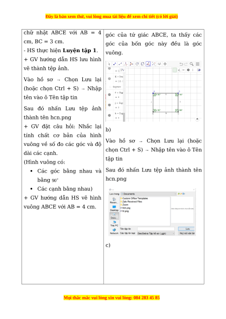 Giáo án Vẽ hình đơn giản với phần mềm GeoGebra Toán 8 Kết nối tri thức
