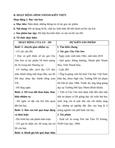a. Mục tiêu: Nắm được những thông tin về tác giả, tác phẩm.