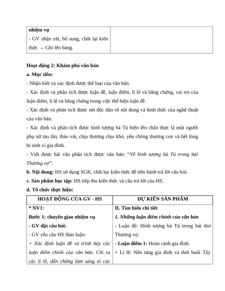 Giáo án Về hình tượng bà Tú trong bài thơ Thương vợ Ngữ Văn 9 Chân trời sáng tạo