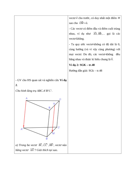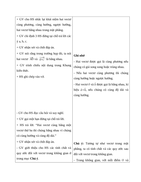 trong không gian, hai vectơ cùng phương, cùng hướng/ ngược hướng, hai vectơ bằng nhau trong không gian.