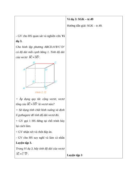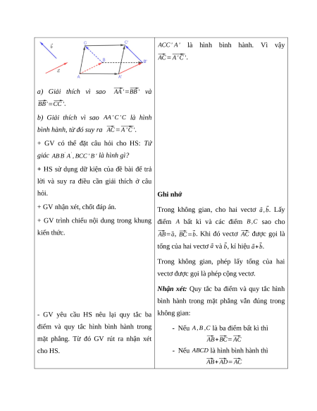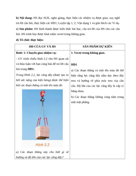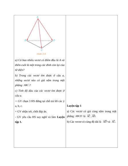 - Nhận biết và thực hiện được các phép toán vectơ trong không gian. 2. Năng lực