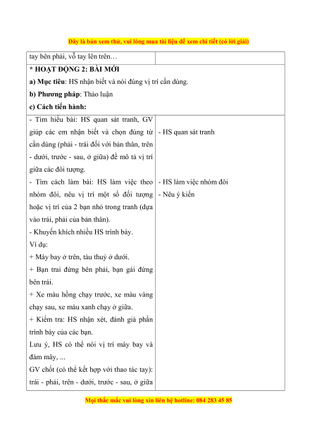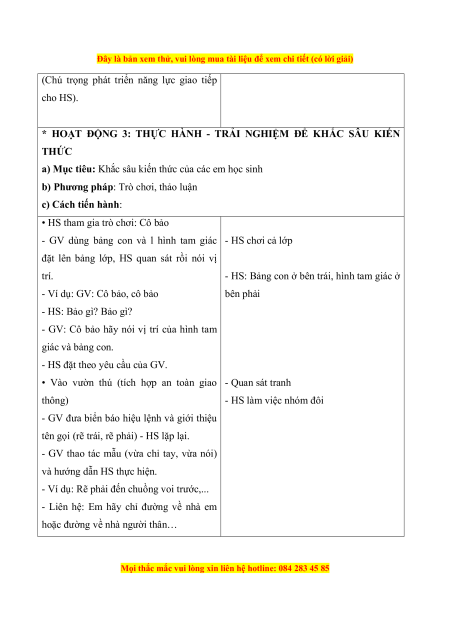 - Nhận biết và sử dụng đúng các thuật ngữ về vị trí, định hướng trong không gian: phải -