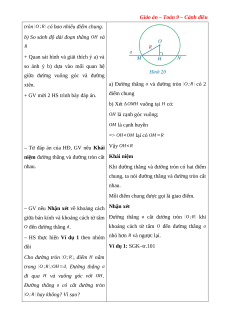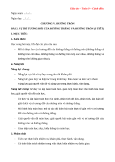 BÀI 2. VỊ TRÍ TƯƠNG ĐỐI CỦA ĐƯỜNG THẲNG VÀ ĐƯỜNG TRÒN (3 TIẾT) I. MỤC TIÊU: