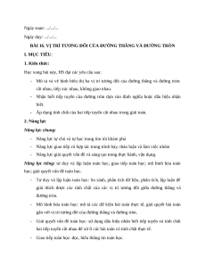 BÀI 16. VỊ TRÍ TƯƠNG ĐỐI CỦA ĐƯỜNG THẲNG VÀ ĐƯỜNG TRÒN I. MỤC TIÊU: