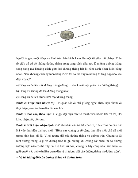giải quyết các bài toán liên quan đến vị trí tương đối của đường thẳng và đường tròn”.