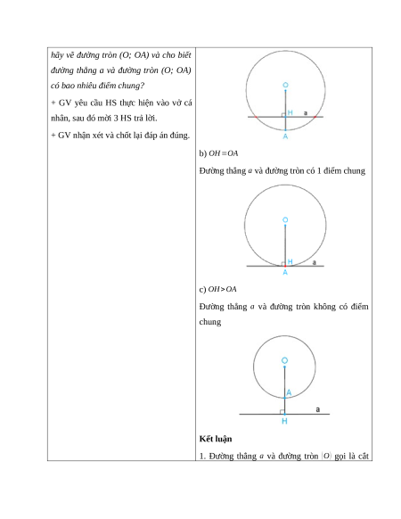 là chân đường vuông góc hạ từ O Đường thẳng a và đường tròn có 2 điểm chung.