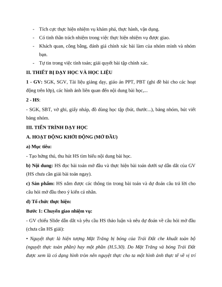 II. THIẾT BỊ DẠY HỌC VÀ HỌC LIỆU