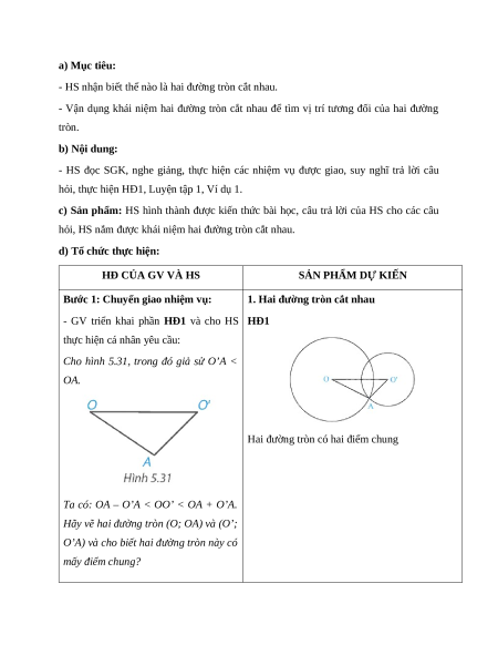 - HS nhận biết thế nào là hai đường tròn cắt nhau.