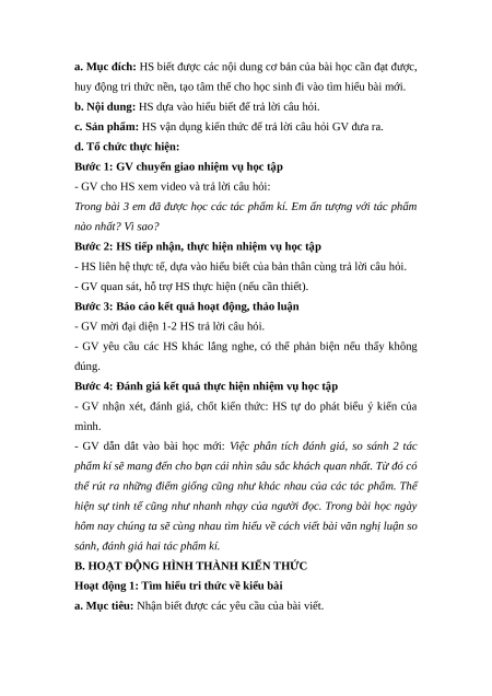 Giáo án Viết bài nghị luận so sánh, đánh giá hai tác phẩm kí Ngữ Văn 12 Cánh diều
