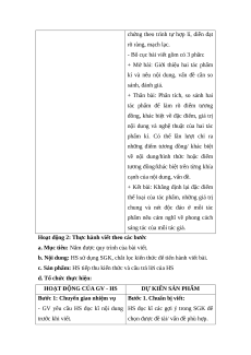 - Viết được bài nghị luận so sánh, đánh giá hai tác phẩm kí. 3. Về phẩm chất