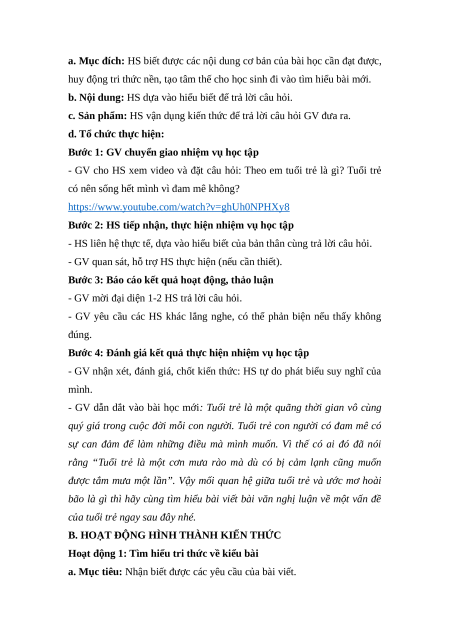 - GV cho HS xem video và đặt câu hỏi: Theo em tuổi trẻ là gì? Tuổi trẻ