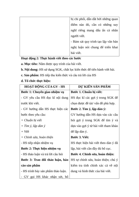 b. Nội dung: HS sử dụng SGK, kết hợp hướng dẫn của GV để chuẩn bị bài viết.